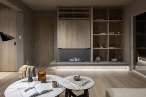 暖かいR-LABELの室内で、エコスマートファイヤーの炎のゆらぎを見つめていると、ふと外の寒さを忘れてしまいそうです。
